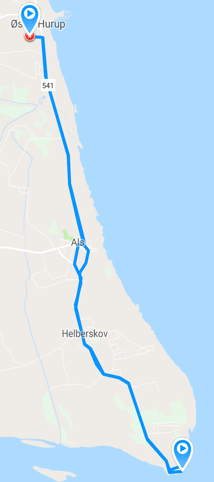 Van naar Padenstedt naar Bovbjerg Camping in Lemvig in het noorden van WestJutland, Denemarken: 360 kilometer
