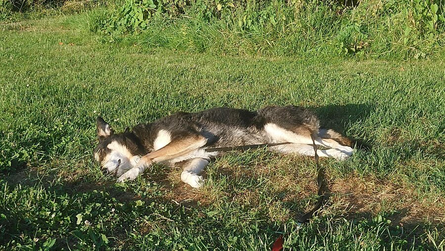 De honden moesten even bewegen voor we op de camping aankomen.